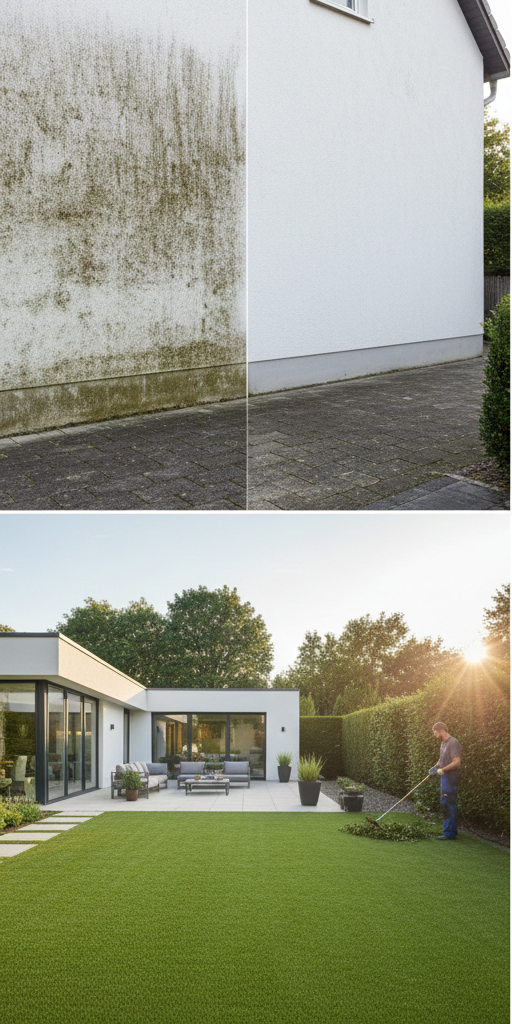 Professionelle Reinigung von Fassaden, Dächern und Steinwegen sowie leidenschaftlicher Garten- und Landschaftsbau. Zuverlässig. Sauber. Werterhaltend.